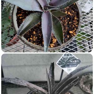 マンガベ “ブラッドスポット” まだ小さ過ぎて、特徴が出ていません💦 早くあの黒斑のまだら模様が出て欲しい❣️ 少しずつアガベの沼に…浸かってません‼︎