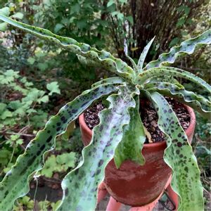 マンフレダ・ウンデュラータ・チョコレートチップス。 ドット柄とウネウネが素敵でずっと欲しかったやつ🌱 抜き苗で購入。初動ミスってちょい調子が悪くなってしまった😭