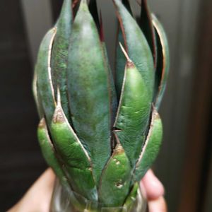 油断して、冬の間ずっとベランダに置いていて、尚且つ水も切っていたので痛々しい葉になってしまってました… しかし復活を目指して植え替えました🪴 サイズは5号ロングから6号標準へ。 生育旺盛なので、樹勢を取り戻すか見ものです😂 ちなみに用土は、市販のサンスベリア用培養土に赤玉と軽石と少量の腐葉土を混ぜたものにしてみました〜