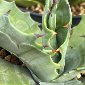 お迎え時のネギっぽかった姿とは見違えるほどワイルドになってます😎 トップスパインも地味目な鋸歯も触ると普通に痛いです😅 22年9月にお迎えした時は4号鉢に植って売られてましたが、21ヶ月経った現在は6号深鉢でも窮屈そう💦 おそらく大人の顔にはなってると思われるので達成感があります😁