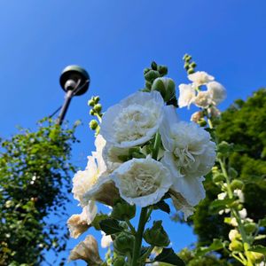 🤍ホリホック🤍 八重咲きの真っ白のタチアオイ💮 青い空に映えていました💖✨