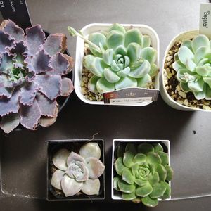 エケベリア属ネオンブレーカーズ エケベリア属アルバビューティー エケベリア属エレガンス グラプトベリア属パープルデイライト エケベリア属オリビア 立ち寄った商業施設で有料駐車場に料金を払うぐらいならと多肉狩りで余計に使うあるある(;^ω^)