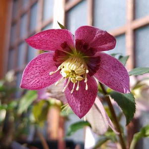 おはようございます😃 新入りのクリスマスローズ💗 5枚の花弁の色と形が可愛いです😊