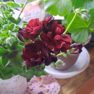こんにちは~🎶 ペラルゴニウム部屋で咲いてます😌 深い赤が大人っぽいけど可愛らしい💕