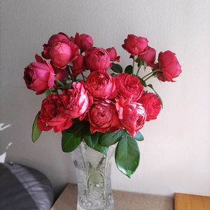 こんにちは😃 房咲き薔薇が重そうだったので 部屋に飾りました。 こんなに咲いてるけど茎は3本だけなんですよ👍