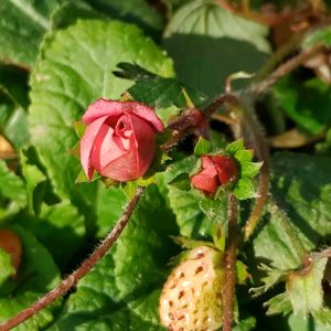 おはようございます😃 昨日庭仕事してたら👀 めんこい🍓蕾見付けたよ👌 側には小っちゃな🍓苺も😆 「かわいい 」を「めんこい」って言います😂