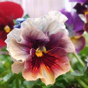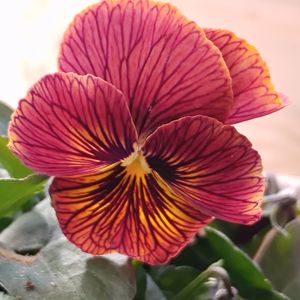 🐯筋が入ったビオラ・タイガーアイレッド🐯 タグがなかったけど、Googleレンズで調べたら💡この名前が出ました🎵 🏷真っ赤な火曜日