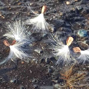 こんにちは😃 路上に白い綿毛がいっぱい落ちてました。 最初、🐦鳥の羽根かと思いましたが💦 よく見たらガガイモの種だったので安心しました。