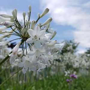 ⭐アガパンサス⭐ が咲き始めました👏👏👏 朝は雨でびしょぬれでしたが、今は白い花が爽やかです😀