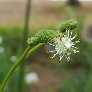 こんにちは😃 ⭐白いワレモコウ⭐ 先っちょが咲いてきましたよ😊 我が家で初なので嬉しい~🎶 🏷金曜日の蕾たち