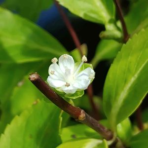 こんにちは😃 剪定した紫陽花に梅のような花がポツリと咲きました😆💦