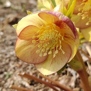 こんにちは~🎶 お友達から頂いたクリスマスローズ💛 やっと咲きました🙌 黄色に赤が入っててとてもキュートです💕