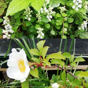 庭の一角シリーズ タツナミソウと ナニワイバラ?