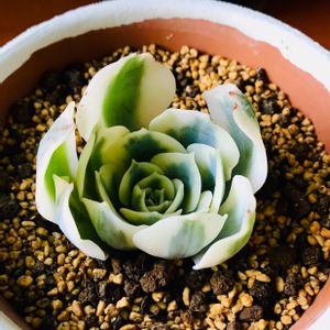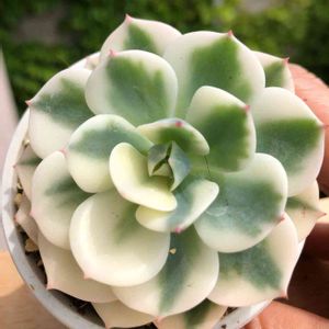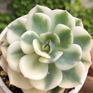 「ルノディーン」 エケベリア属 涼を呼ぶ斑入りの子② 育ててみたいの気持ちが溢れ とうとうお迎えに。 しかし、巷では、マカベアナ錦 さんで賑わっている😍 まず、ルノー様を 育てることに集中しましょ🎶