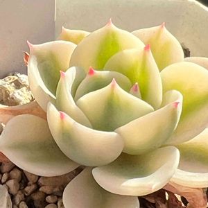 多肉生産農家さんに行った時、可愛い💕と思って購入しようとしたら、レジで「無理すんな」と弾かれ、値段を聞くと一つ3千円だった💦多肉初心者の私には育てるのは無理かなぁ?と諦めたけど、皆さんのGSを見てたら欲しくなって、翌週買いに行ったけど、もうその日のうちに買われて行ったとの事。で、レジにこの写真の子が居たのだが、この前の子よりもかなり大きくて掌サイズ。この前の子が3千円ならこの子は? もしや1万円ですか?と聞くとスバリ的中。 欲しかったけど、ルノディーン様とは他でまた出会える日を心待ちにしてます。 ps.せめて写真を撮らせて欲しいとお願いし、了承を頂き写真を撮らせて貰いました。