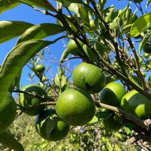 職場の敷地内の道端になっている、たぶんみかん🍊 まだ青々していてたわわに実ってます。