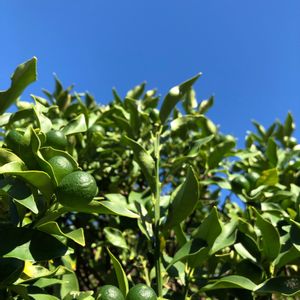 おはようございます☀ 昨日の散歩 青い空 金柑の実 ミカン科 キンカン属 小さいけど、ビタミンCが 沢山あります🍊 甘露煮は 喉風邪に良く効きます🍊