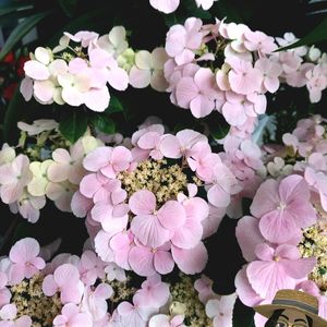先月のpicです。 ピンクのアジサイは以前に投稿しているので 本日はHakusanさんのハイドランジアのご紹介♡✨ フレンチボレロ❁⃘*.゚ 白っぽくうっすらピンク🌸 ⑴剪定して、ドーム状の姿を楽しむ? ⑵枝を伸ばして、しだれた姿を楽しむ? どちらにするか悩む(-.-;)