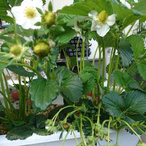 種まきイチゴ。 お花も咲いて実も成りそう?