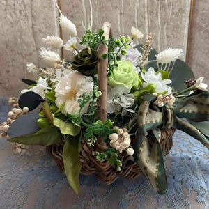 今日も一日お疲れ様でした😊 今日は一日雨降り☔️ 午前中はひとつ前のpic、綿毛ハーバリウム作り🎶 午後からはプリザーブドアレンジを作りました💚 テキストではベースをフォームで作ってアレンジしていくのですが作るのが大変そうだったので家にあったバスケットにアレンジ😆 ナチュラルなアレンジ出来ました💚 まだ作れていないアレンジキットがあるのでこのGW中に仕上げていこうと思います🎶