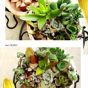 初めての二段寄せ。🌱 もっと大きい鉢でしたかったんんだけど、まだ多肉ちゃんが足りません!!😂結果…2.5号鉢のミニサイズで作りました。😆💕 可愛い!!🥰🥰🥰💘紅葉するともっと可愛くなるね~。 箱庭二段寄せは、もう少し腕を磨かなきゃ。楽しみ~😊🌱💕