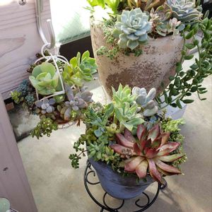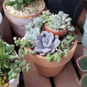 まだまだな出来だけど…😅 子株や葉挿し、セダムが成長してミニ寄せ鉢が増えました。可愛い。😊🥰🥰🌱💕