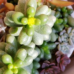 緑亀の卵。。🐢🥚 根元に子株や葉挿しも育ってます。 てっぺんの黄色いつぶつぶは 蕾の赤ちゃんです。🌱 可愛い。🏡💕 🏷️つぶつぶの日に参加します。😊💕
