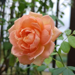 おはようございます😃 お友達に頂いた薔薇🌹 ☺ジュード・ジ・オブスキュア☺ 家に来て3日目で咲きました🙌🙌 この薄橙色とコロンとした咲き方が可愛いです😌🎶