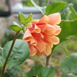 おはようございます😃 💛リバーシブルで咲くダリア💛 咲き始めは濃いオレンジ色でしたが 開いたら薄いオレンジ色になりました😌 花弁の内側が黄色いです😀