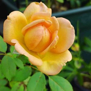 おはようございます☀ 💛お友達から頂いたばかりのシャーロット💛 お友達が育てる薔薇は葉っぱも綺麗😌