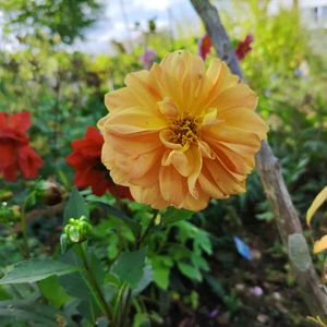 一本の赤いダリア株なのにオレンジ色が1つ咲いてるの😆 不思議よね~💦