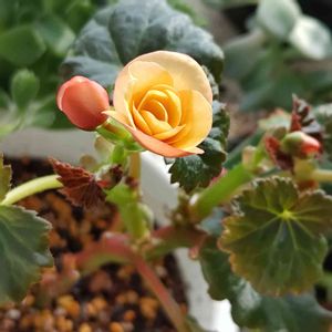1年前に衝動買いしたリーガス・ベコニア💛 夏の暑さを乗り越せなく元株は枯れてしまい😰挿し木した1本だけが残りました😌貧弱だけど花が咲きました😊 寒さも弱いけど暑さも弱かった😣💦