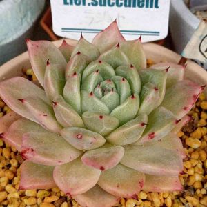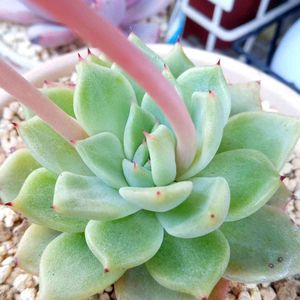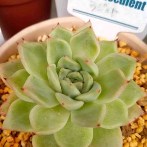 『のわのGSでマネコレ♪』 6月1日より3巡目です! 多肉屋さん厳選の多肉植物30品種を集めてみました🪴 🏷18日はラジョヤ 🏷マネコレ_ラジョヤ ↓のタグで毎月の変化を比較できます♪ みどりのまとめも同時更新しています! 花芽の茎が取れて スッキリ夏顔が爽やかです( 。•̀_•́。)キリッ ジッと見ててしばらくしてから 赤いぽっちり🔺に気付きます😅