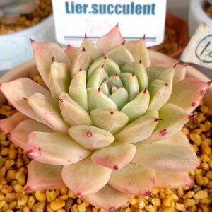 『のわのGSでマネコレ♪』 10月1日より7巡目後半戦突入です! 多肉屋さん厳選の多肉植物30品種を集めて観察中🪴 当初集めた多肉が脱落し途中で新規苗を迎えたり 徒長苗を胴切りしたり観察不能の多肉もあります なにとぞご容赦下さい 🏷18日はラジョヤ 🏷マネコレ_ラジョヤ ↓のタグで毎月の変化を比較できます♪ みどりのまとめも同時更新中! だんだん葉先がピンクになって 爪💅もぽっちり赤く目立ってきました! この子は1年間コンパクトにまとまったまま だったのでそれもなんか嬉しい