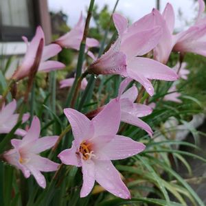 こんばんは🎶 やっと降った雨でやっと咲き出した 💗ハブランサス💗 🏷0の付く日は雨粒の日