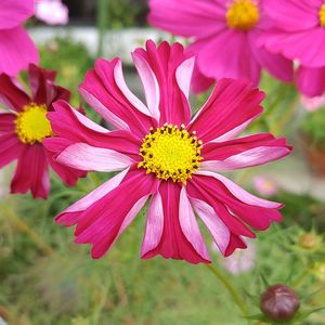 こんにちは~🙋 こぼれ種で咲いてる秋桜🌸 今朝の顔は半開きでした😆