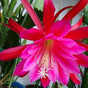 冬から室内管理の孔雀サボテンが、今朝 咲きました✨ かなりのボリュームです( ̄▽ ̄)