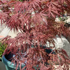赤い枝垂れもみじの新芽が芽吹きました🍁 繊細で切れ込みのある葉が特徴です🍁