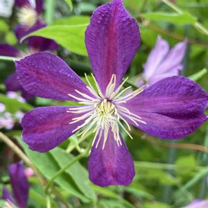 クレマチスミケリテ💜 こちらの方が先に咲いてました😊 シロマンエと同じ時期に咲いて ダブルで嬉しかったです🥰