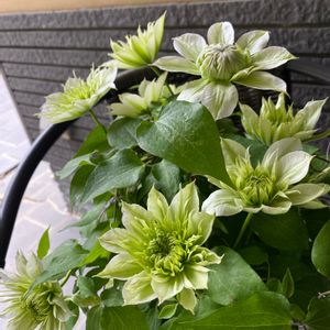 クレマチスも徐々に咲き始めました ①②はおばあさまのお庭にあったクレマチス 掘り起こして鉢植えにして養生していました 昨年白っぽい方は咲かなかったので、こんなに華やかなんだと驚きました ③こはな 今年はお花が大きく咲いてます 株が充実してきたのかな😊👍 ④オブスキュア よく伸びて、たくさんお花をつけています オブスキュアは実生苗が3年目を迎え、こちらも楽しみ💓 ⑤華川 グリーンがかった白のお花がとても素敵です あまり伸びていかないタイプみたい