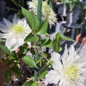 我が家のクレマチス その2 1. 白万重はお迎えした時から 勢力があって 気持ちが良いです💚 どこまでも蔓を伸ばし どこまでもお花が咲いて 素晴らしいクレマチスです👍 2. 水面の妖精🧝♀️手に入れただけで満足していたのですが‥お花も珍しい色で🩵さすがの人気者です❣️ 3. 4.5. どれも華川です 同じ株から咲いた花がこんなに違います‼️ 一度で三度美味しい😋もとい 一度で三度美しいです😍
