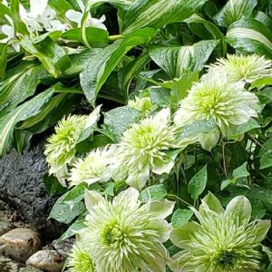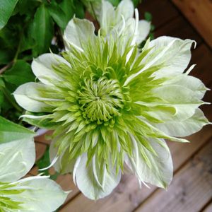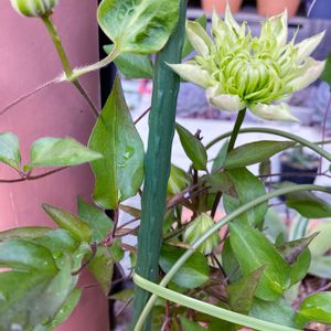 今年迎えたクレマチス " 華川 " グリーン掛かった八重咲きの美しいクレマチスです 今から来年が楽しみです✨✨