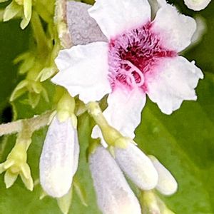 今日のお花❀✿ ゴマ(胡麻﹅)💟 ゴマ科ゴマ属 長い茎に薄っすら紫🟣がかった 釣り鐘のような形の可憐な花💠💠 昨年植物園より🤳🎵 🏷️可憐な火曜日