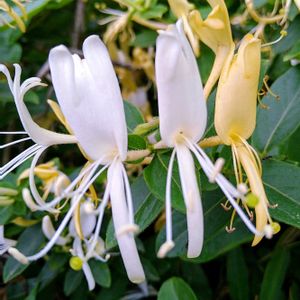6月1日 今日のお花🌼 スイカズラ(忍冬)💟 スイカズラ科スイカズラ属 常緑つる性木 英名が「ハニーサックル」 開花すると白く 咲き進むに従い黄色に変化🤍🟡 ご近所のフェンスに絡まり🎵 毎年優しい香り漂わせています✨✨ 花言葉💐 『愛の絆』『献身的な愛❣️』