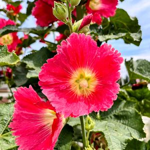 沿道花壇に植えられた 赤いタチアオイ(立葵)💟 アオイビロードアオイ属 別名:ツユアオイ(梅雨葵) ホリホック/ホ-リ-ホック💠 花言葉💐の一つ 「気高く威厳に満ちた美✨」は 高く伸びた茎に咲く美しい花の姿に 由来しているそうです🎵🥰 🏷️真っ赤な火曜日 🏷️カラフルな火曜日 🏷️可憐な火曜日