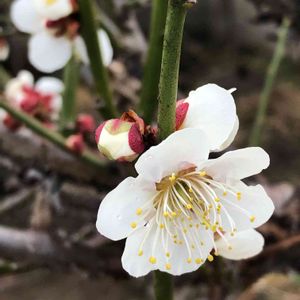 いつ咲くのか 🤔と思っていました梅 暖かい日が続き 何輪か開花しました😃 母が植えたこの梅の木 年々弱って来ている ように 思います😰