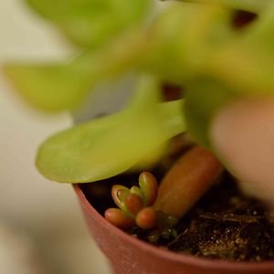 宝珠扇の根元に虹の玉の葉っぱが転がっていて芽を出していた。どうやら購入したときからあった模様。こういうお得感、大好き。