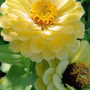 おはようございます🤗 今日のお花🌼百日草 我が家の庭で咲いているビタミンカラーのヒャクニチソウです😊