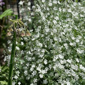 オンファロデスとアリウム・シクラム シルバーリーフに白い小花 可愛すぎます♡ アリウムシクラムは、これまた20年くらい前のサカタさんの球根で、渋めの色味と変わった形がお気に入りです。