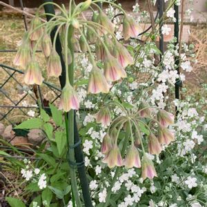 アリウム シクラム 地味だけど存在感のあるお花です。 バックの白いお花はオンファロデス、このような組み合わせは好きなパターン♡